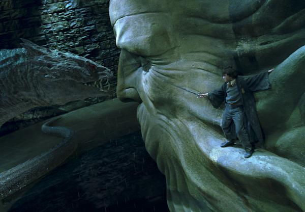 Basilisks are enormous poisoned-fanged serpents. Unlike other snakes, the Basilisk is unique in its ability to kill with its gaze alone. Looking into the eye of the Basilisk will cause instantaneous death, however, even catching a glance of it in a reflection will cause Petrification, or total paralysis. Created by hatching a chicken egg under a toad, Basilisk breeding was banned in the medieval age due to the danger they posed. Basilisks are loyal to wizards that speak Parseltongue, a rare gift shared usually by dark wizards including Tom Riddle and Salazar Slytherin.