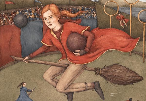 A Chaser is a position in a Quidditch team, where the player's task is to score goals. There are three Chasers per Quidditch team. The Chasers must guide a large red Quidditch ball called the Quaffle into the goal hoops, scoring ten points at a time. Ginny Weasley was notably a Chaser for both the Gryffindor Quidditch team, and later, the Holyhead Harpies.
