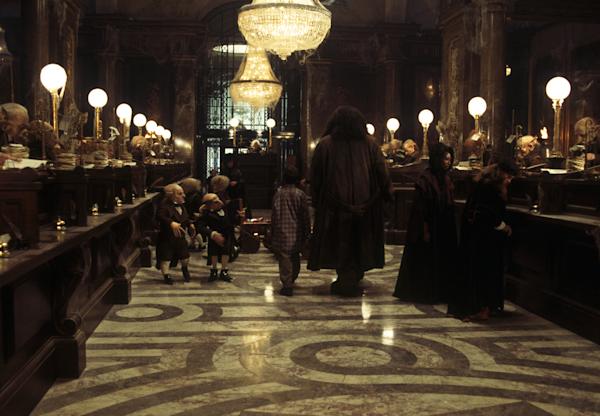 The wizarding bank located in Diagon Alley, Gringotts was owned and operated by goblins. Dating back to 1474 the cavernous tunnels lead miles underground and stretch out beneath the streets of London, with the highest-security vaults located the deepest. The carts, used to navigate the mine-like deep tunnels, and keys, used to open the vaults, can only be operated by goblins. Although Gringotts was arguably one of the safest places in the wizarding world (as Hagrid said, "yeh'd be mad ter try an' rob it"), it has been subject to breaches of its security.