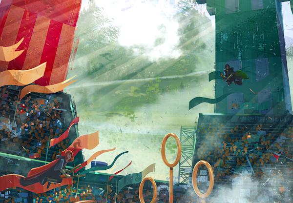 Quidditch was a wizarding sport played on broomsticks. The teams consisted of seven players competing to score the higher number of points, either by the Chasers (three on each team) scoring goals by throwing a Quaffle through a hoop or by the Seekers (one on each team) catching the Golden Snitch - at which point the game ended. Although the Snitch was worth 150 points, a game could be won the team who did not catch the Snitch if enough goals were scored before it was caught. Chasers and Seekers also had to avoid being hit by Bludgers, hard iron balls that were directed across the pitch by Beaters (two on each team). The final position is the Keeper, who would defend their team's hoops from opposing Chasers. Games were usually played by mixed teams, although the Holyhead Harpies were an all-female professional team.