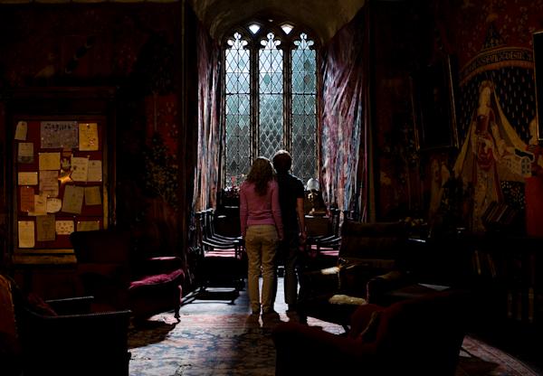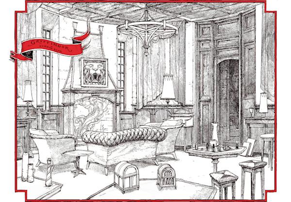The Gryffindor common room could be found in Gryffindor Tower, and was accessible with a password given to the portrait of The Fat Lady. A circular room decorated in the house colours of red and gold, the Gryffindor common room was filled with cosy sofas next to a roaring fire, perfect for finishing homework or holding parties after Quidditch victories, and had circular staircases that led up to the students' dormitories.